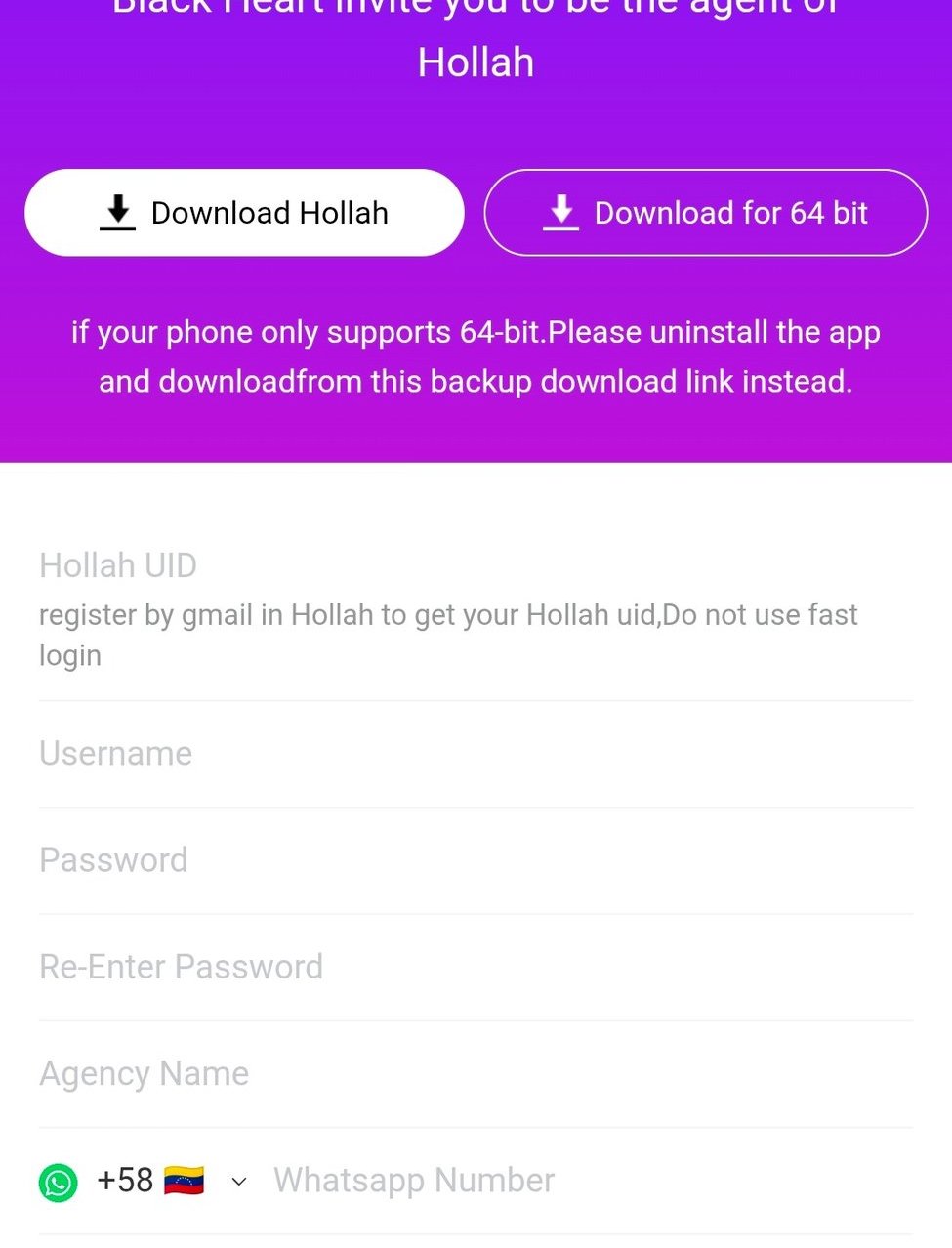 Once you have your Hollah UID from the app, return to this registration page.